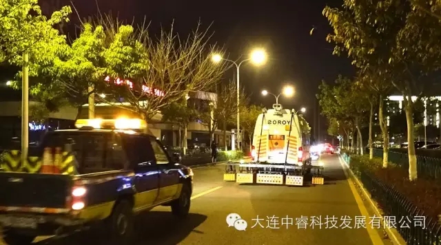 圖3 西堤路探測(cè)作業(yè)(市政110工程車護(hù)航)